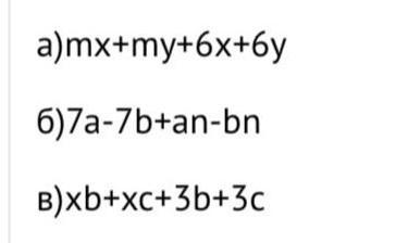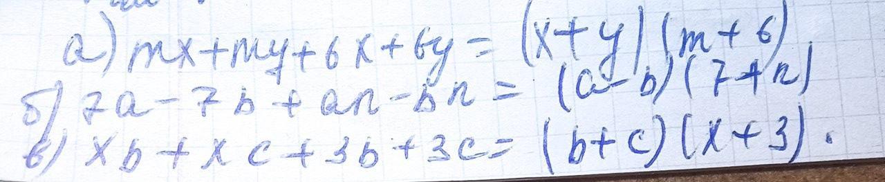 а) mx+my+6x+6y = m(x+y) + 6(x+y) = (x+y)(m+6)