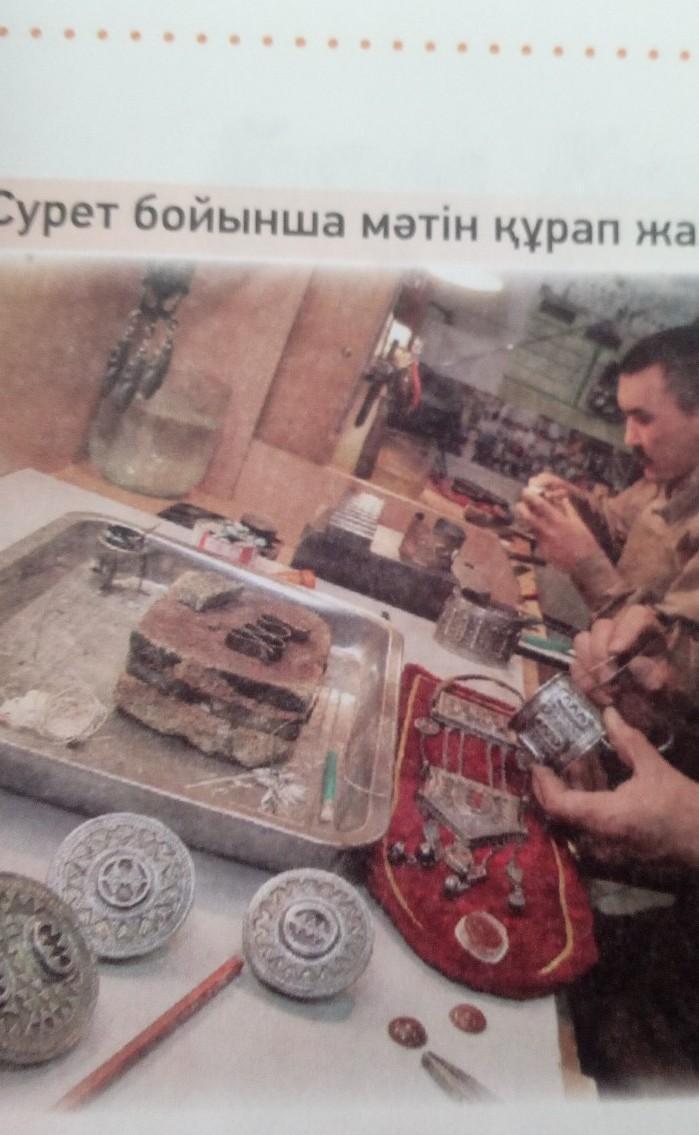 Менин акем турли зергерлик буйымдар жасайтын жерде жумыс истейди. Мен бугин алгаш рет акеммен бирге жумысына бардым. Акем маган озинин жасаган улттын оюлармен комкерилген зергерлик буйымдарын корсетти, олар биринен сон бири сонжай козин жауын алатын санди, адеми. Мен оскенде акем сиякты зергер болгым келеди.