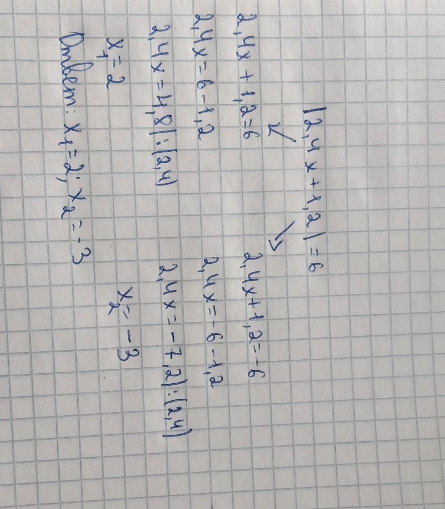2,4х+1,2=6 2,4х=3,6 х=3,6÷2,4 х=1,5