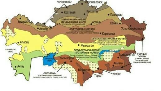 Используя почвенную карту Казахстана определите изменение видов почв в вашей местности.