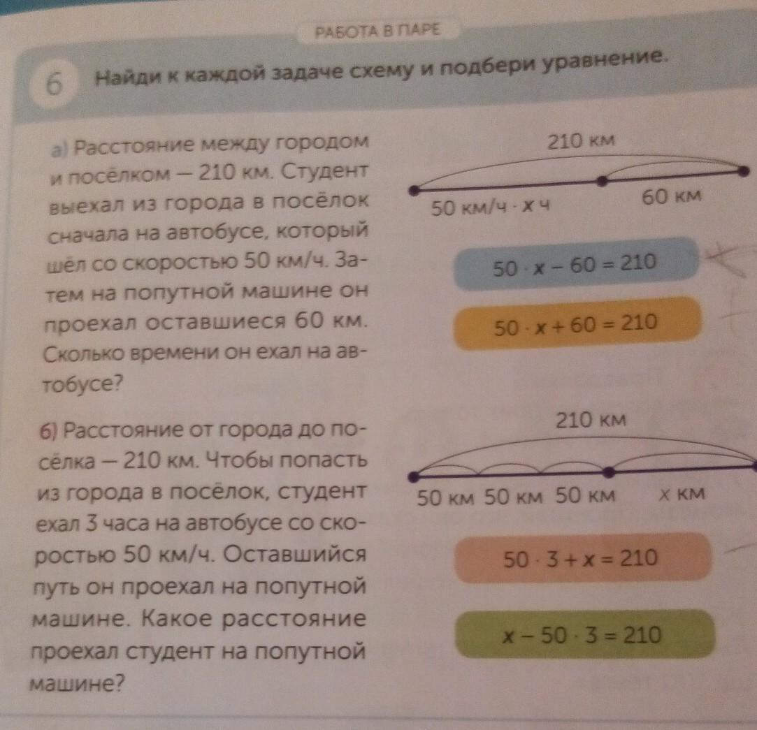 На автобусе студент проехал (50* 3) км , на попутной машине х км , а общее расстояние 210 км .Уравнение будет :