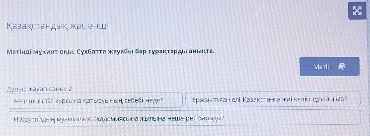 Мәтінді мұқият оқы. Сұхбатта жауабы бар сұрақтарды анықта.