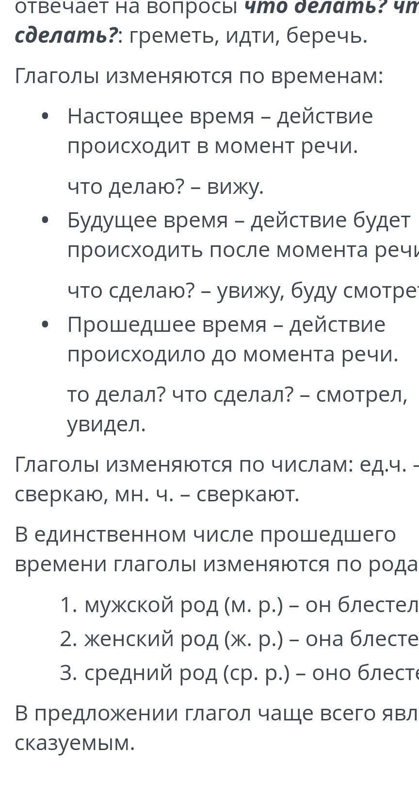 Начальная форма глагола – неопределённая форма (инфинитив) отвечает на вопросы что делать? что сделать?: греметь, идти, беречь.