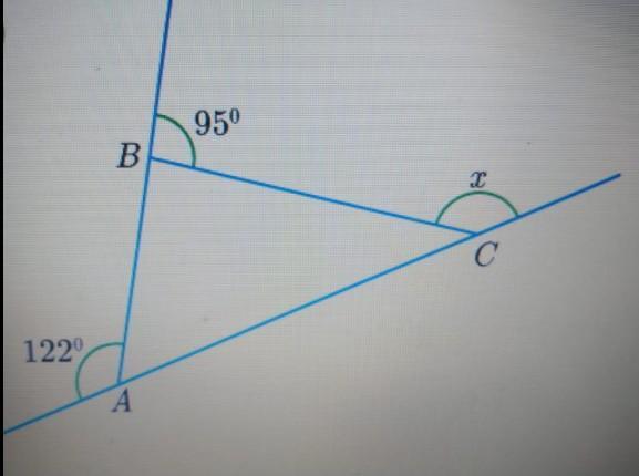∠х=58+85=143° это дополнительный угол к третьему углу треугольника, который равен 180-∠АВС-∠ВАС