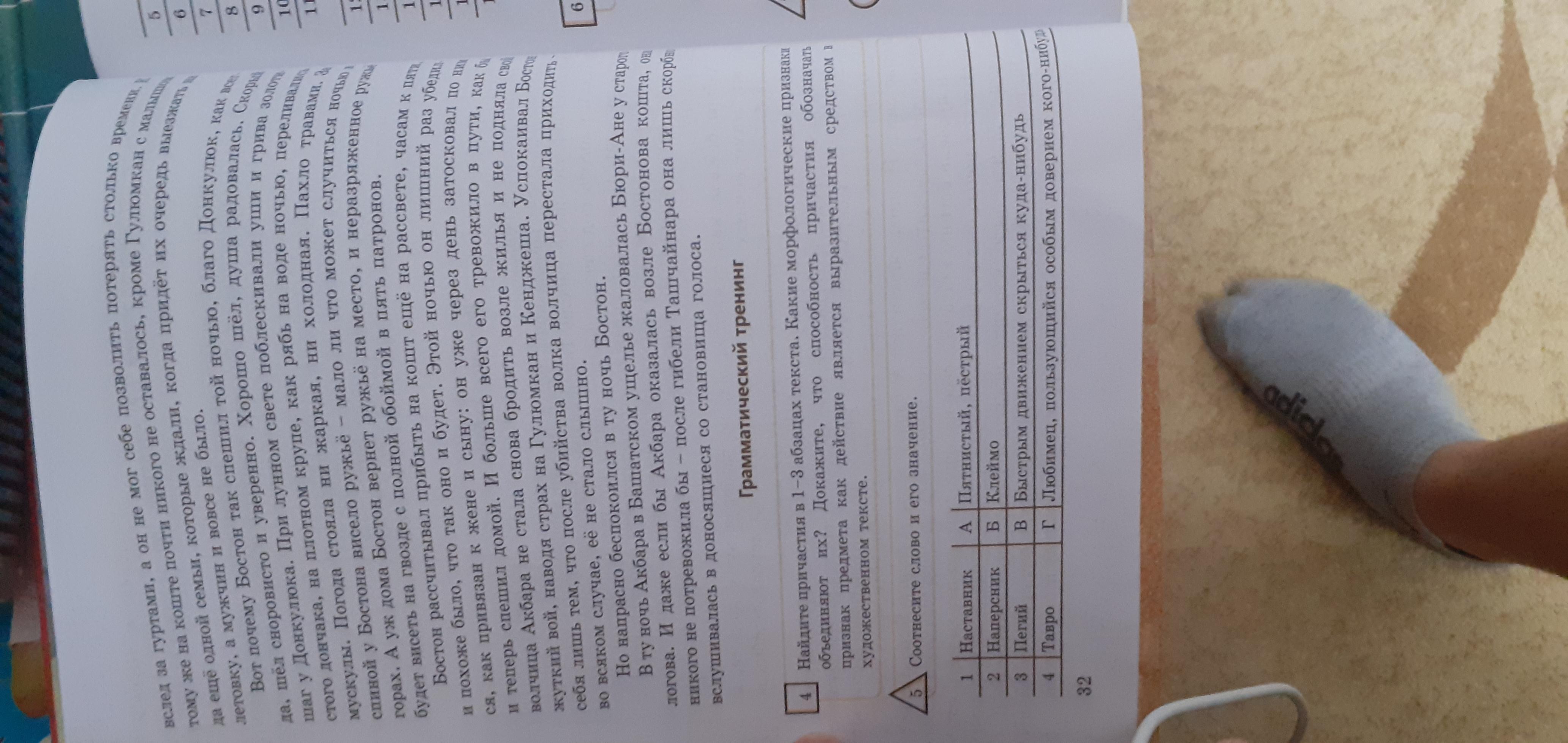 Упр. 4. Найдите причастия в 1, 2, 3-м абзацах текста. Какие морфологические признаки объединяют их? Докажите, что способность причастия передавать признак предмета как действие является выразительным средством в художественном тексте.