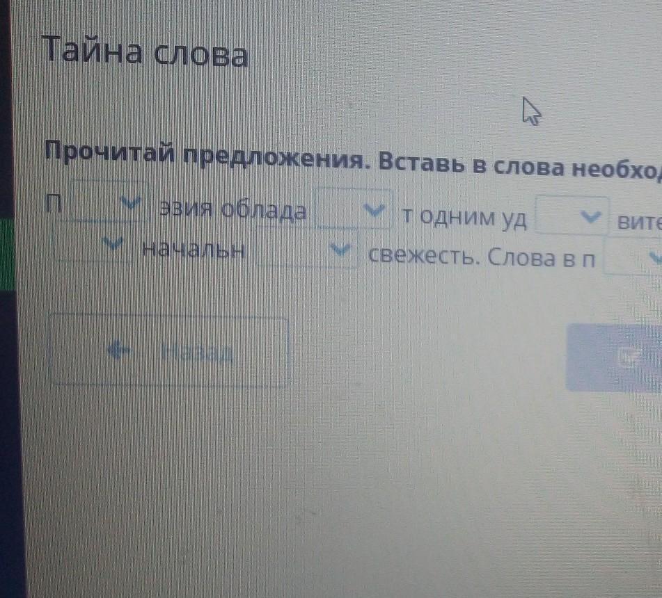 Тайна слова прочитай предложения вставь в слова необходимые буквы из выпадающего списка