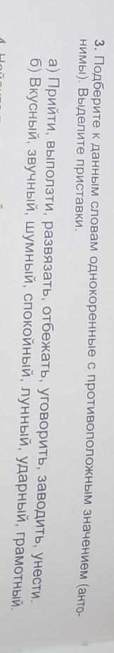 ПОМОГИте с русским 1.Стр.148. Упр.3. Работаем с буквой а).Задание: к данным словам подобрать однокоренные антонимы, выделить приставки (слова записывать парами) ПО ЭТОМУ ЗАДАНИЮ СДЕЛАЙТЕ УПР