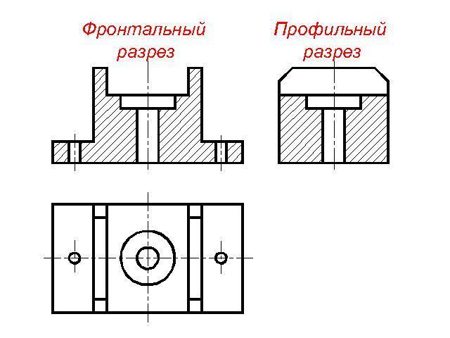 Свободной рукой нарисуйте передний и профильный срез детали.
