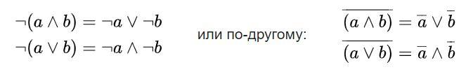 Видимо, вы имели в виду законы де Моргана. Их два, и записываются они несколько иначе.