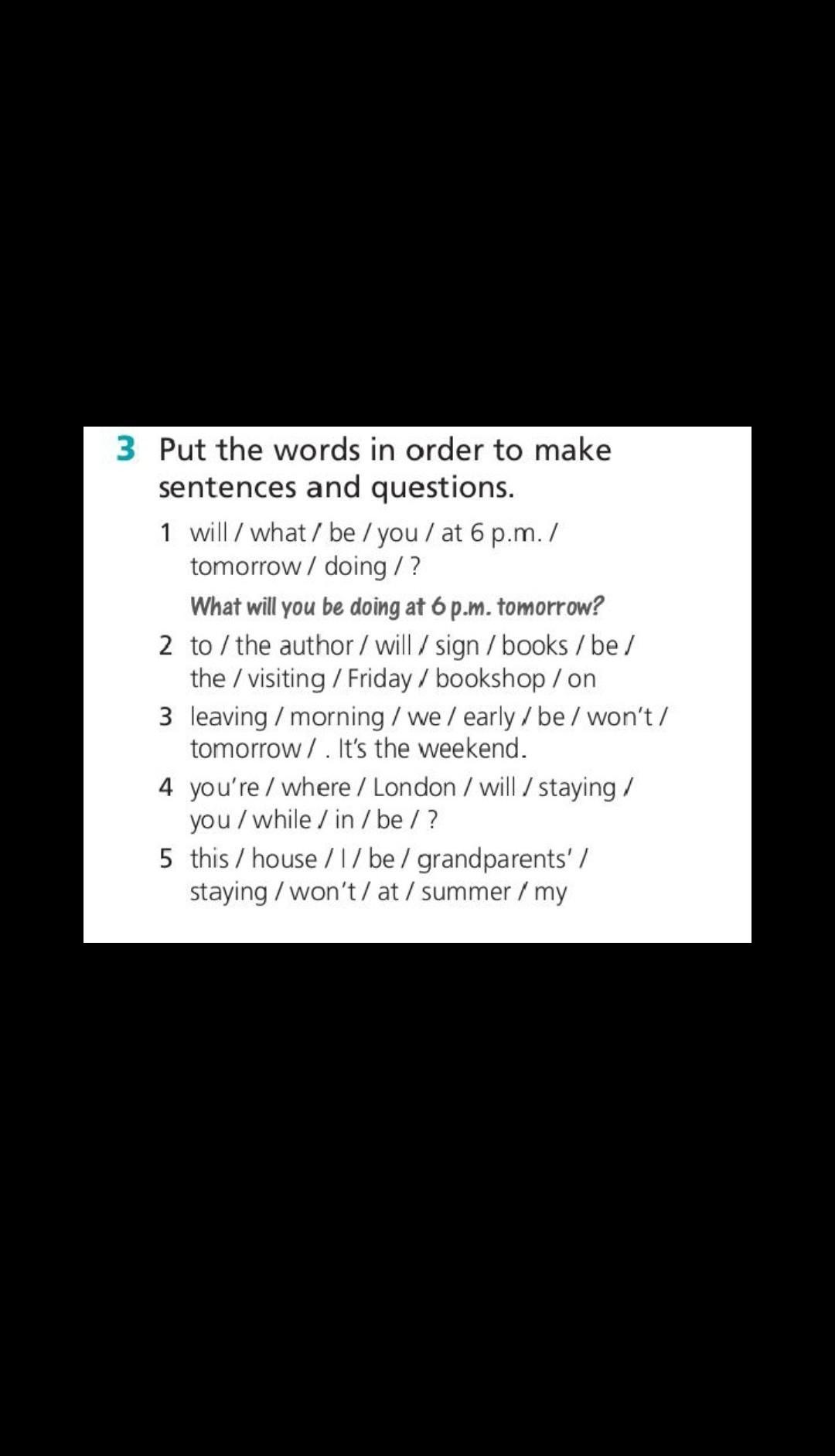 1. What will you be doing at 6 p.m. tomorrow?