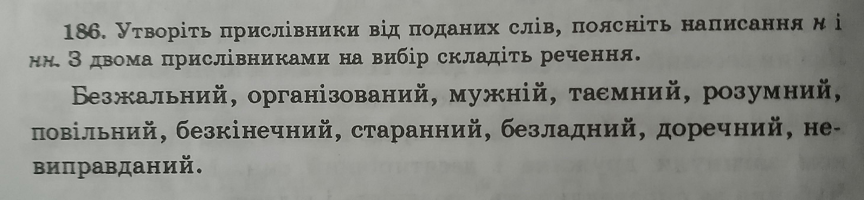 безжалісно, організовано,мужньо,таємно,розумно,повільно, безкінечно,старанно,безладно,доречно, невиправдано