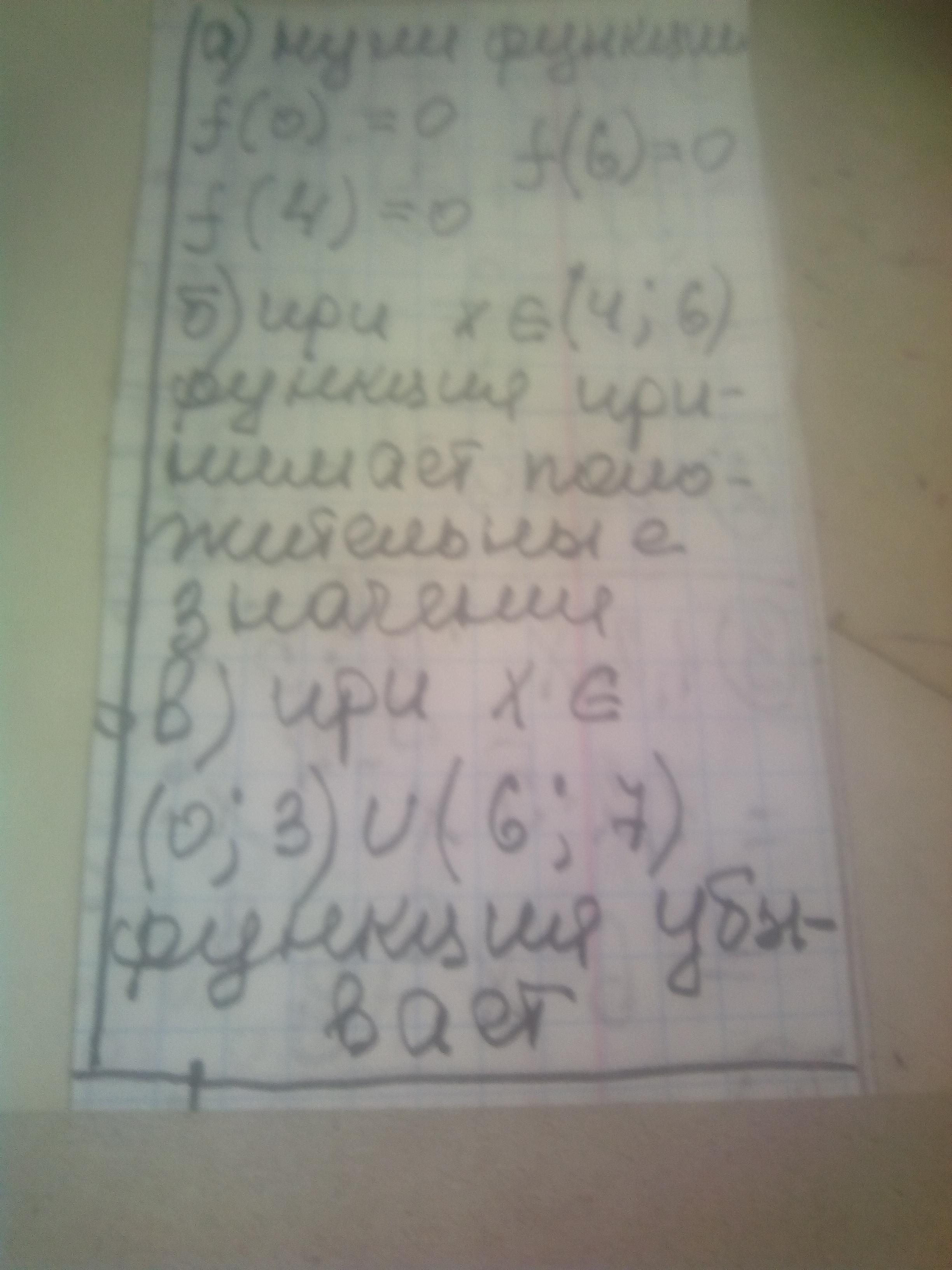 Найти нули функции, промежутки, в которых функция принимает положительные значения, промежутки убывания функции