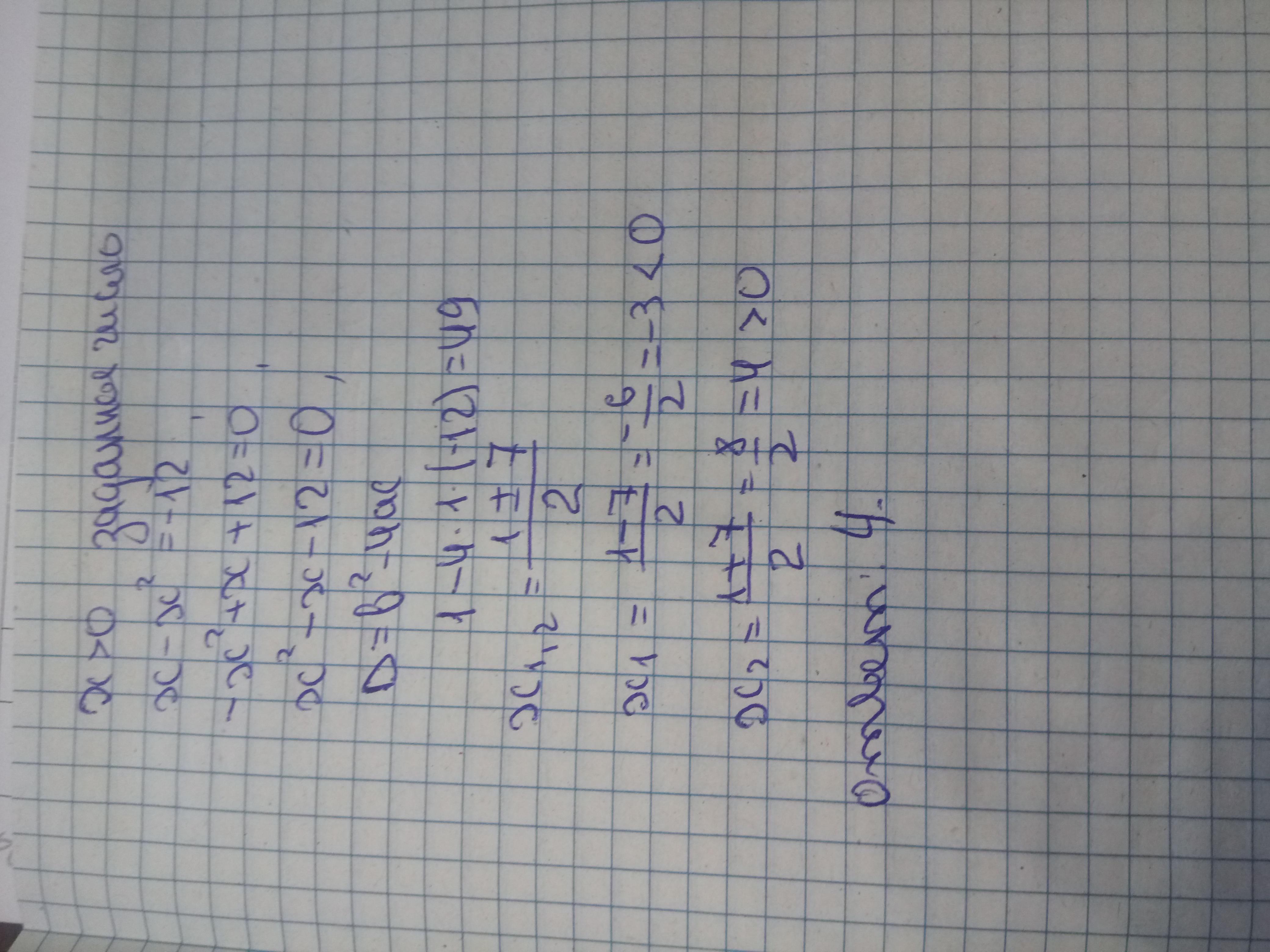 Разность между действительным положительным числом и его квадратом равна -12. Найдите это число. ПОМОГИТЕ ПОЖАЛУЙСТА