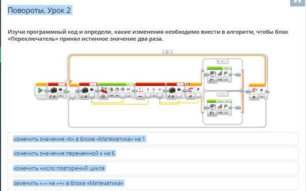 Изучи программный код и определи, какие изменения необходимо внести в алгоритм, чтобы блок