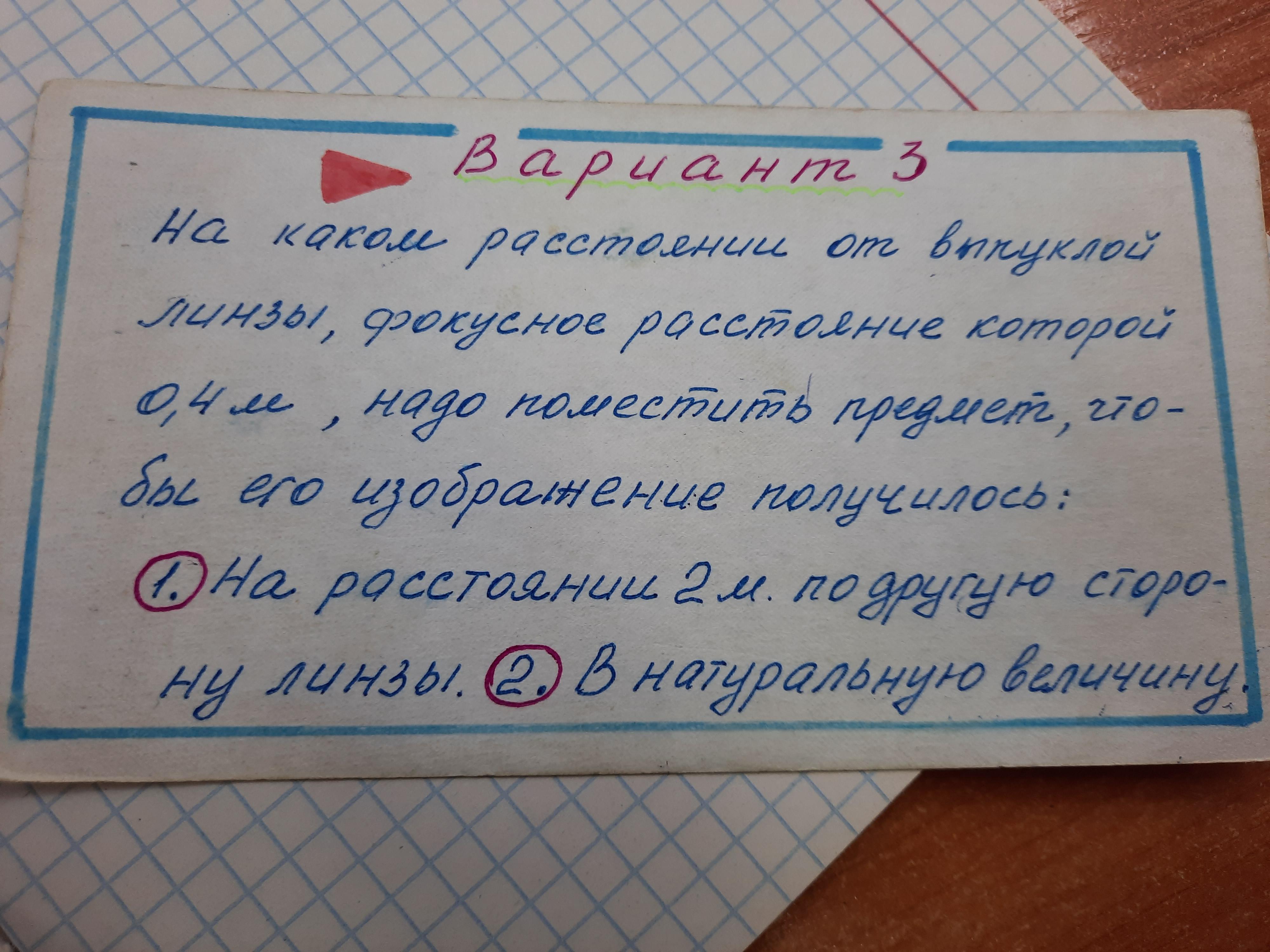 d2=f2=2*F=2*0.4=0.8 м (в двойном фокусе)