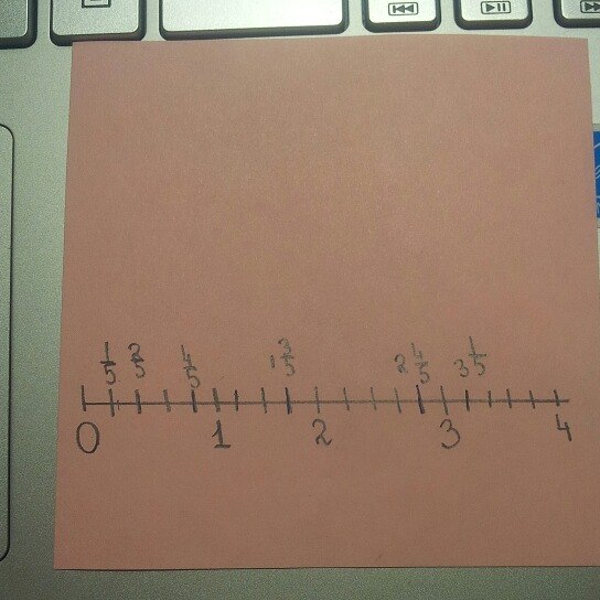 Справа от точки: 1 3/5, 2 4/5, 3 1/5.