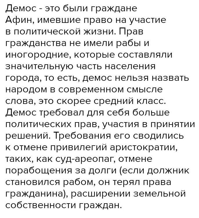 тем, что не участвовал в управлении государством. Хотел править государством, требовал отмены долгового рабства и переселения земель. В афинский демос входили ремесленники, торговцы, земледельцы. отменить долговое рабство и поделит