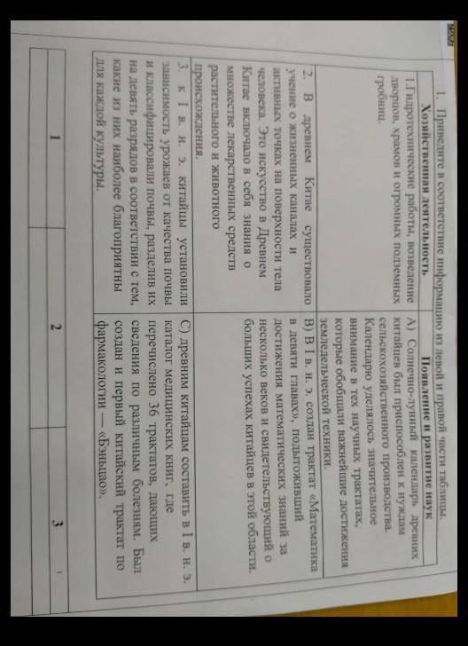 Превидите в соответствие информацию из левой и правой части таблицы..