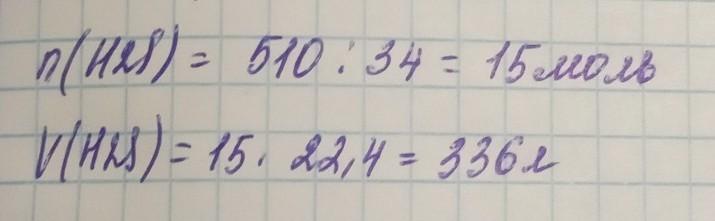 n(H2S) = m(H2S) / Mr(H2S) = 510 г / 34 г/ моль - = 15 моль