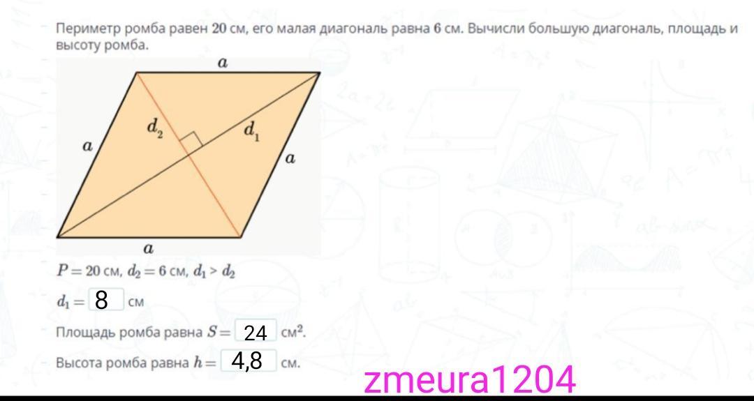 S=1/2*d1*d2=1/2*8*6=48/2=24см²