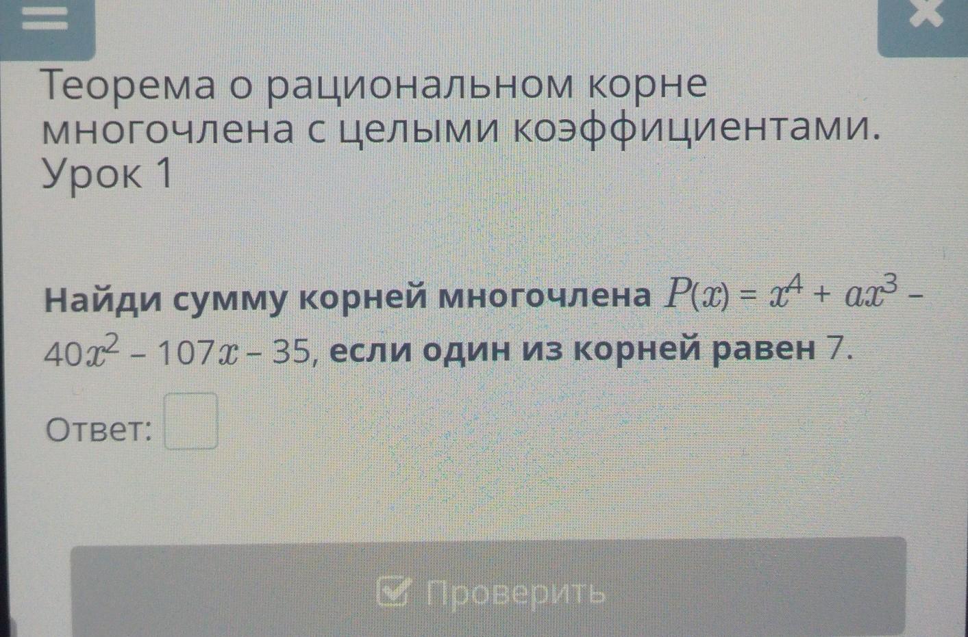 Сумма всех корней многочлена (включая комплексные) равна: