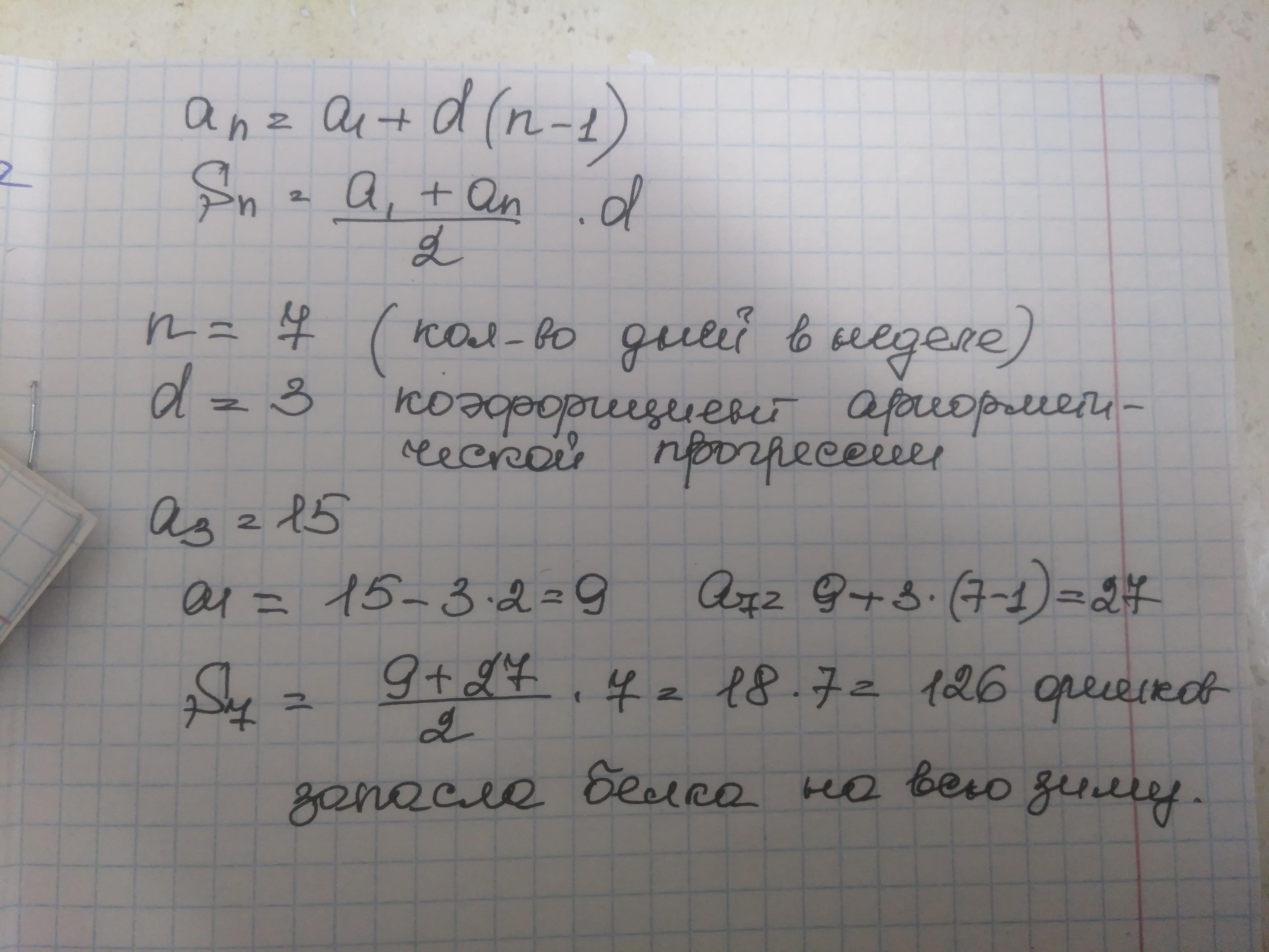 запас, если за один третий день зимы она сгрызла 15 орешков.