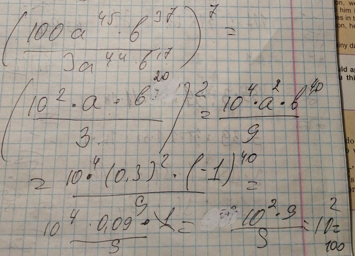 (100a⁴⁵b³⁷/3a⁴⁴b¹⁷)⁷=100⁷a⁷b¹⁴⁰/2187