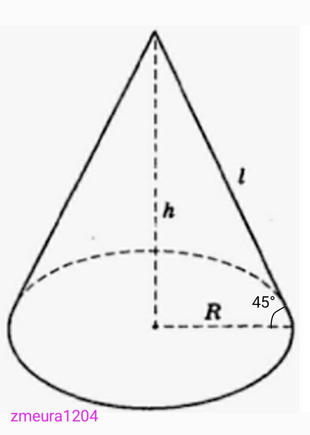 Трикутник якій утворюють висота, твірна та радіус прямокутний рівнобедрений трикутник.