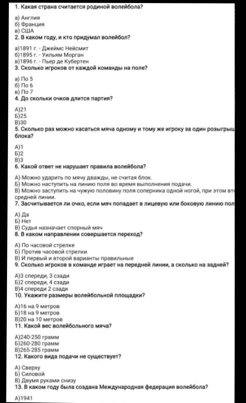 1-в, 2-б, 3-б, 4-б, 5-а, 6-наверное в,7-а, 8-а, 9-а, 10-б, 11-б, 12-в, 13-1947 год