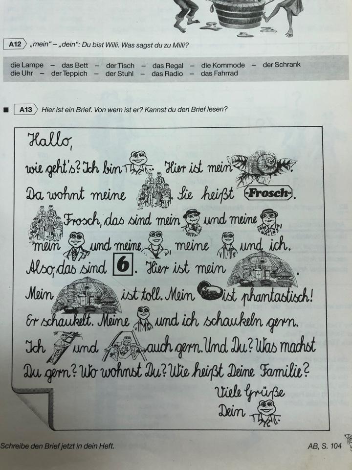 Привет, как дела? Я лягушка. Здесь мой домик. Здесь живёт моя семья. Их зовут лягушки. Семья лягушек, это мой дедушка и моя бабушка, мой папа и моя мама, моя сестра(если не ошибаюсь) и я. И нас всего шесть. Здесь мой дом(или шалаш, хз). Мой дом очень прикольный. Моя кровать фантастическая! Она качается. Моя сестра любит качаться. Мне нравиться лазить(или карабкаться) и качаться на качелях. А ты? Что тебе нравится делать? Где ты живёшь? Как зовут твою семью?