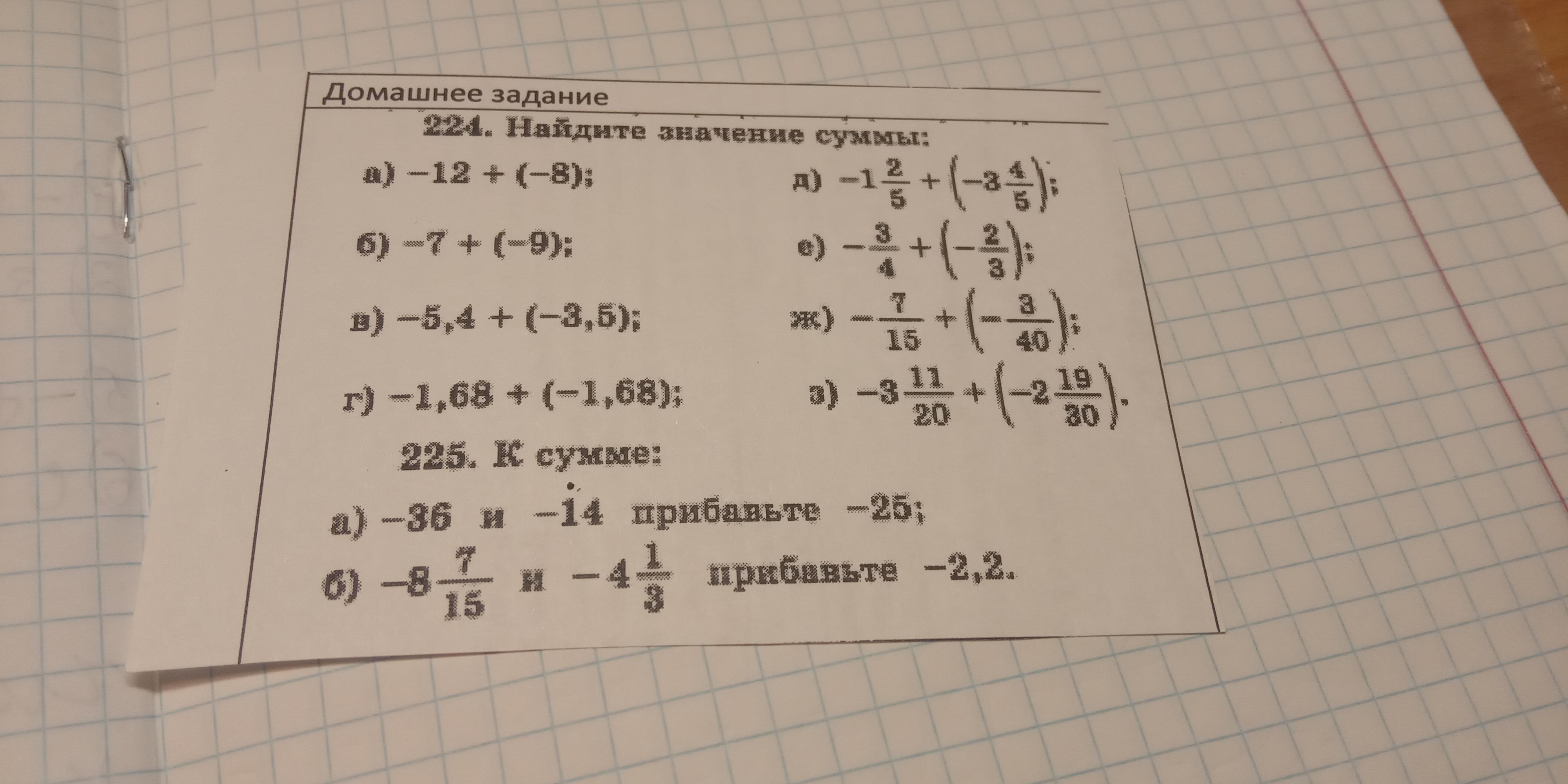 №224 а) = -20 ; б) = -16 ; в) = -8,9 ; г) = -3,36 ; д) = -5 1/5 ; e) = -1 5/12 ; ж) = -13/24 ; з) = -6 11/60