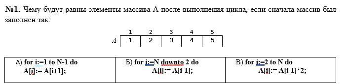 Чему будут равны элементы массива A после выполнения цикла, если сначала массив был заполнен так: