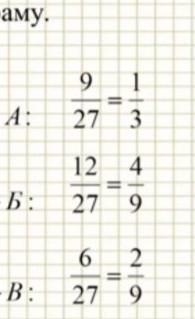 Помогите с задачей, нужно сделать диаграмму но я не понимаю как( Тоесть я не понимаю как они переводят дроби в эти, более меньше, объясните пожалуйста (• ▽ •;)