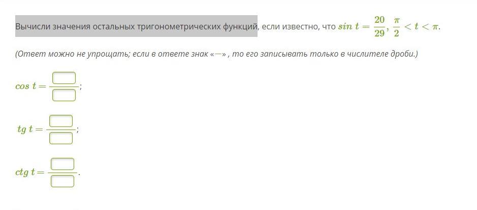 угол принадлежит 2 четверти, значит остальные тригонометрические функции отрицательны.