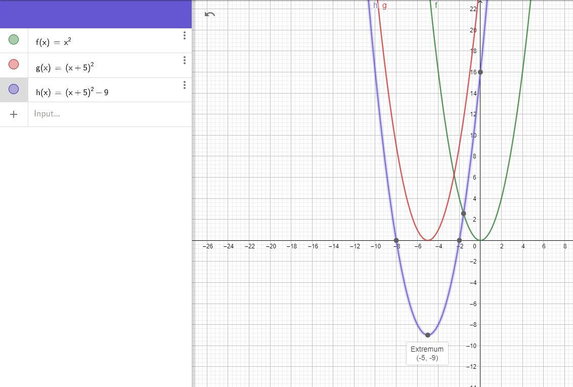 y3=(x+5)²-9 - сдвиг графика вниз на 9