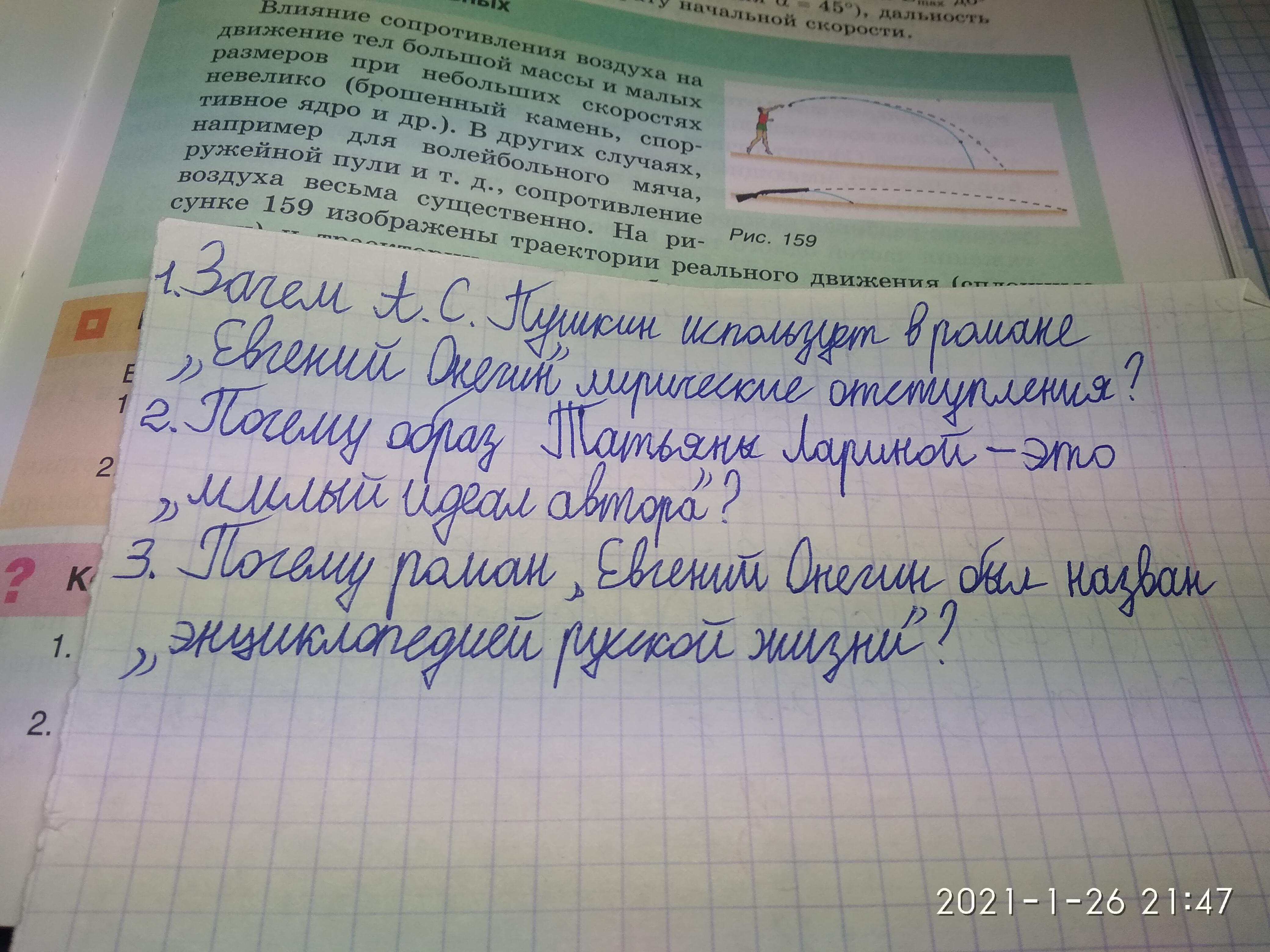 Лирические отступления – это размышления автора о каких-либо событиях, происходящих в романе; с их помощью А. С. Пушкин знакомит читателей с нравами и обычаями того времени. С их помощью Пушкин рассказывает не только о жизни и быте главных героев, но и о своей жизни, о своем отношении к героям романа.