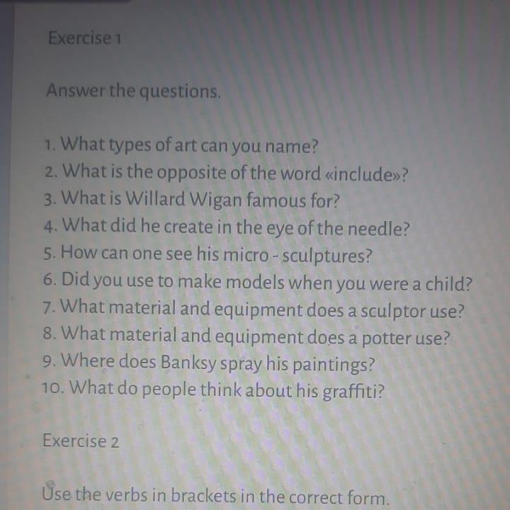 1. I know such types of art as literature, the visual arts, the graphic arts, the plastic arts, the decorative arts.