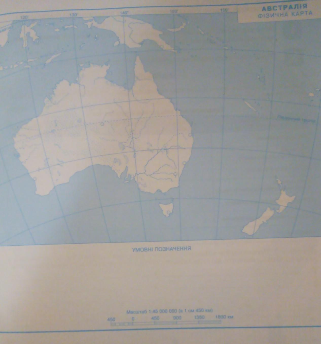 Завдання 3. На контурній карті підпишіть назви об'єктів берегової лінії Австралії: