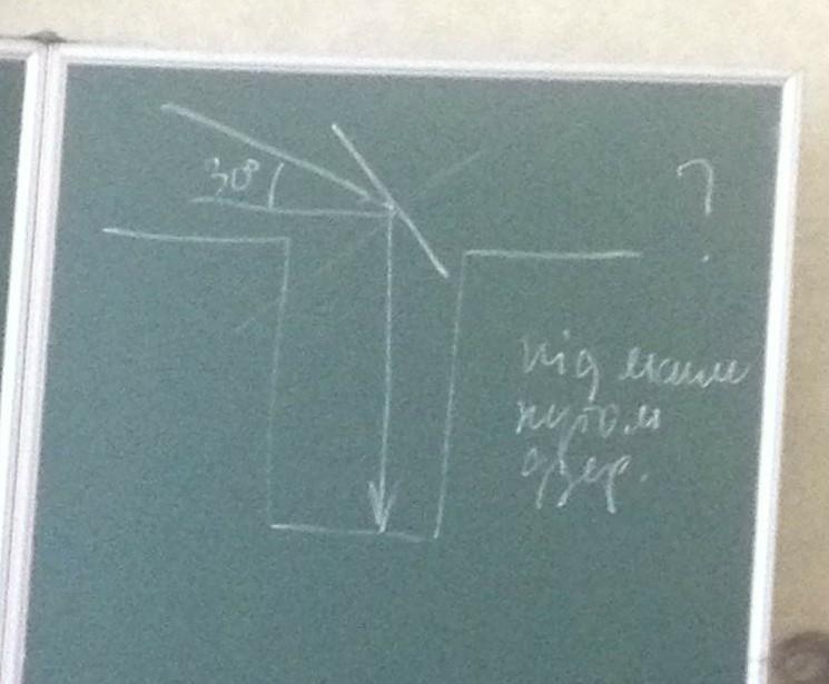 Угол падения = углу отражения от поверхности, соответственно, угол равен 30