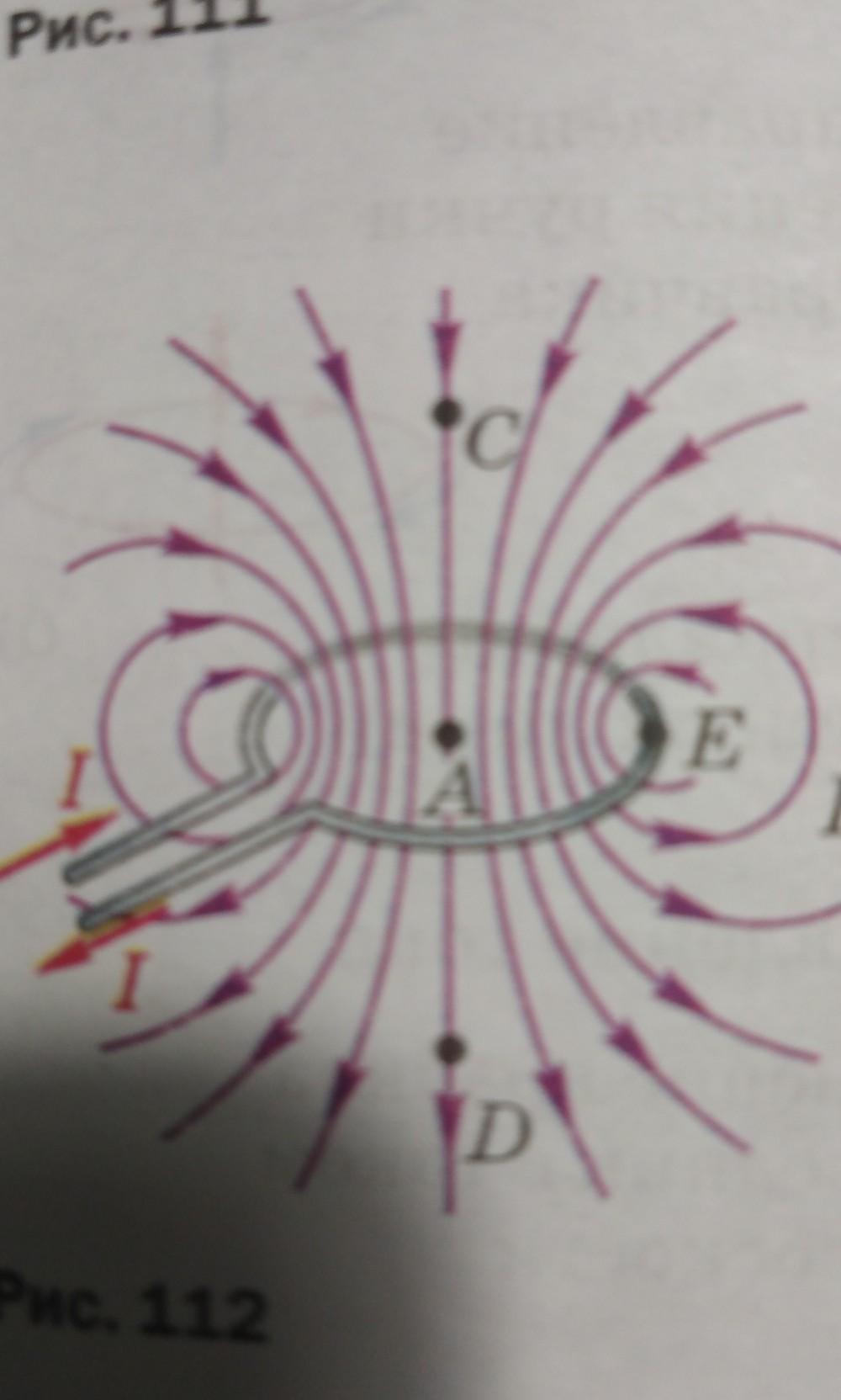 В точке A (в центре витка), сила действия поля на магнитную стрелку наибольшая.