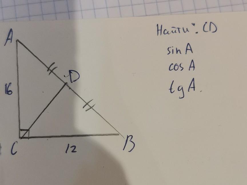 АВ=√(АС²+СВ²)=√(16²+12²)=√(256+144)=