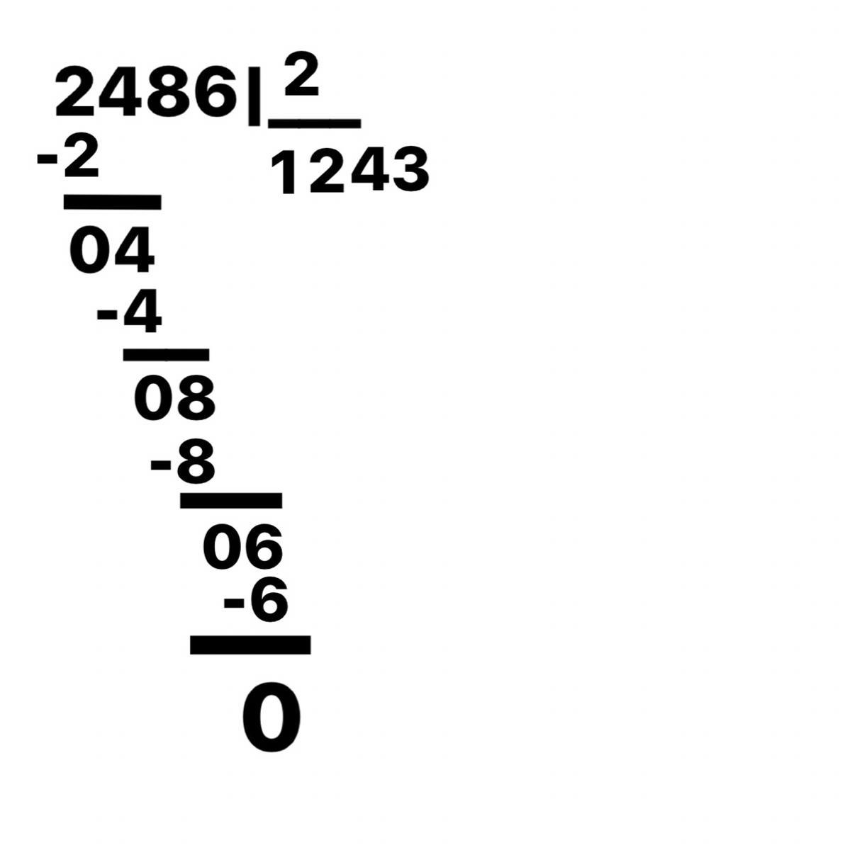 1)2486 поделить на 2 в столбик помогите пожалуйста