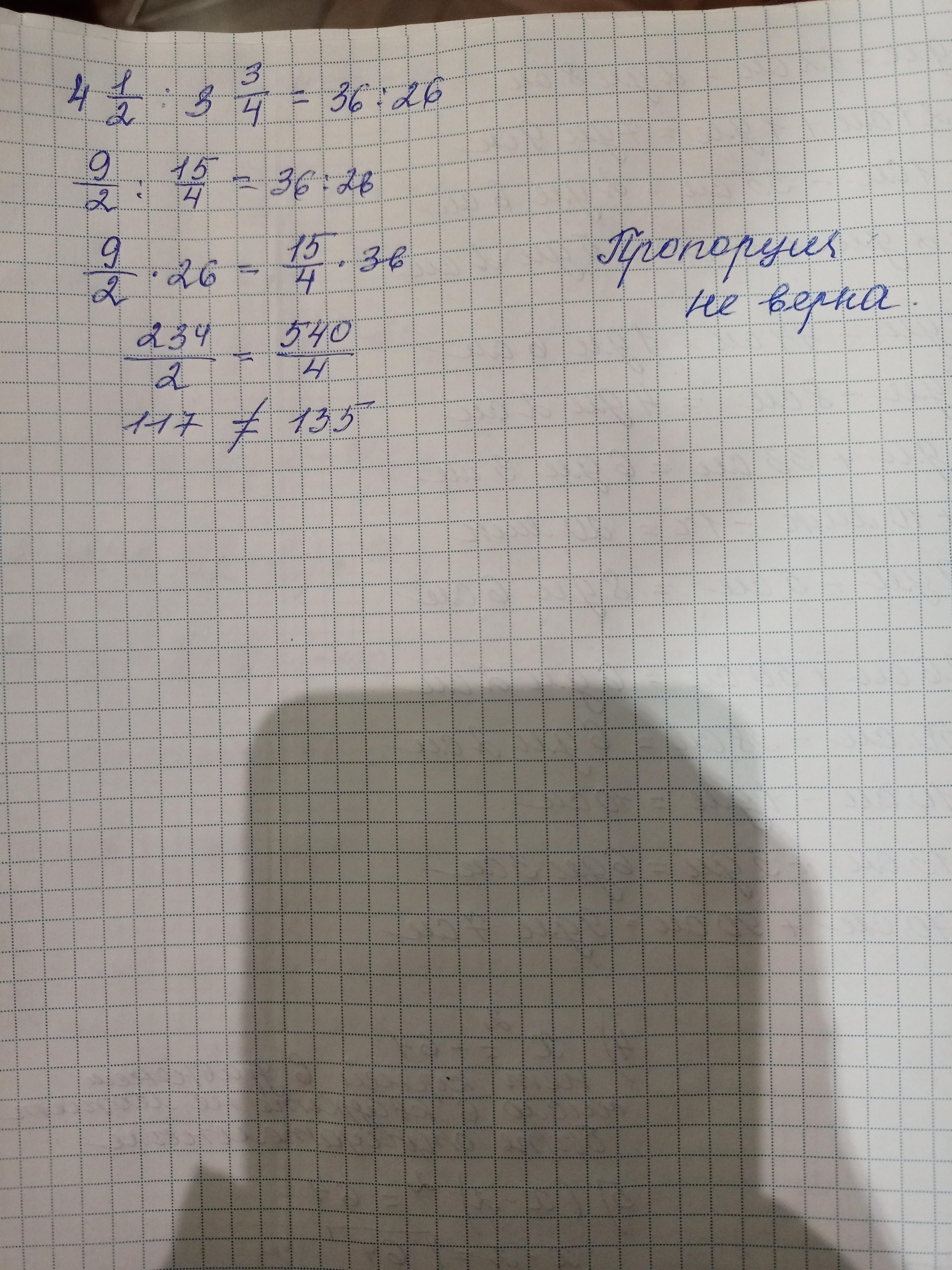 проверьте верна ли пропорция или нет 4 целых 1/2 :3 целых 3/4= 36 26