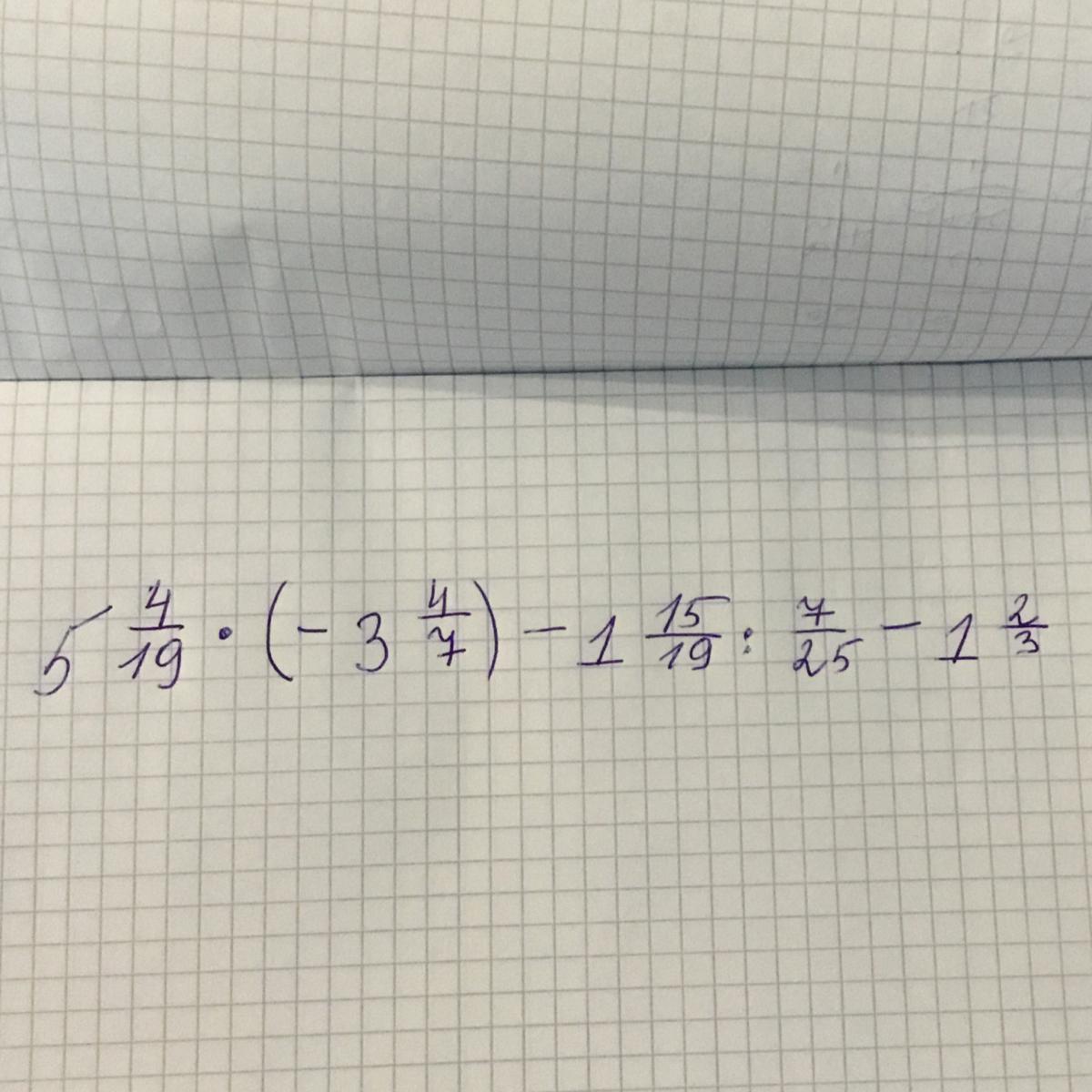 5 4/19 * (-3 4/7) - 1 15/19 : 7/25 - 1 2/3