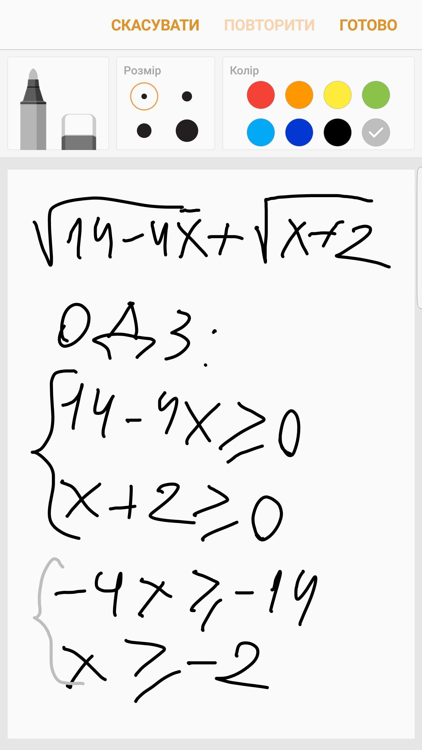 Под квадратным корнем не может стоять отрицательное число, поэтому оба выражения под корнями больше или равны нулю. Дальше на фото