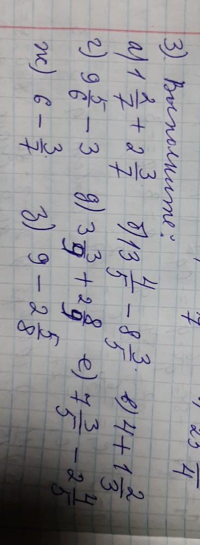 е) 7 3/5 - 2 4/5 = 4 4/5