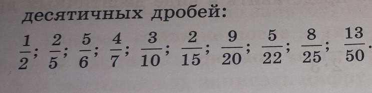 помогите выпишите дроби,которые можно представить в виде дробей со знаменателями 10,100,1000 и т.д.Запишите их в виде десятичных дробей