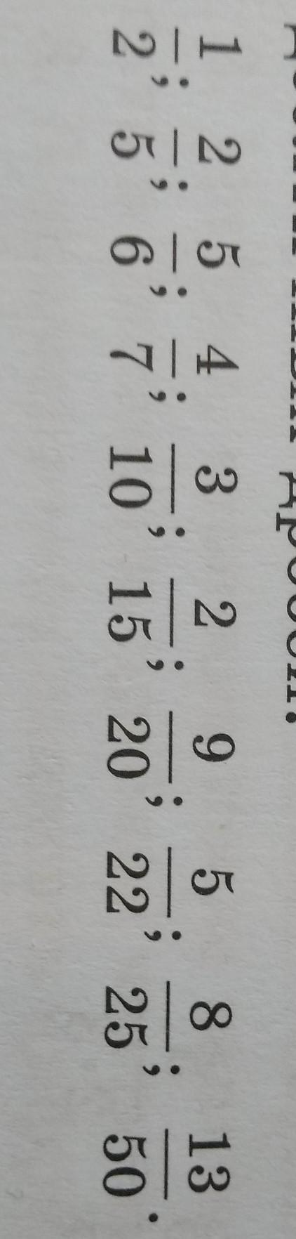 1/2, 2/5, 5/6,4/7, 3/10, 2/15, 9/20,5/22, 8/25, 13/50