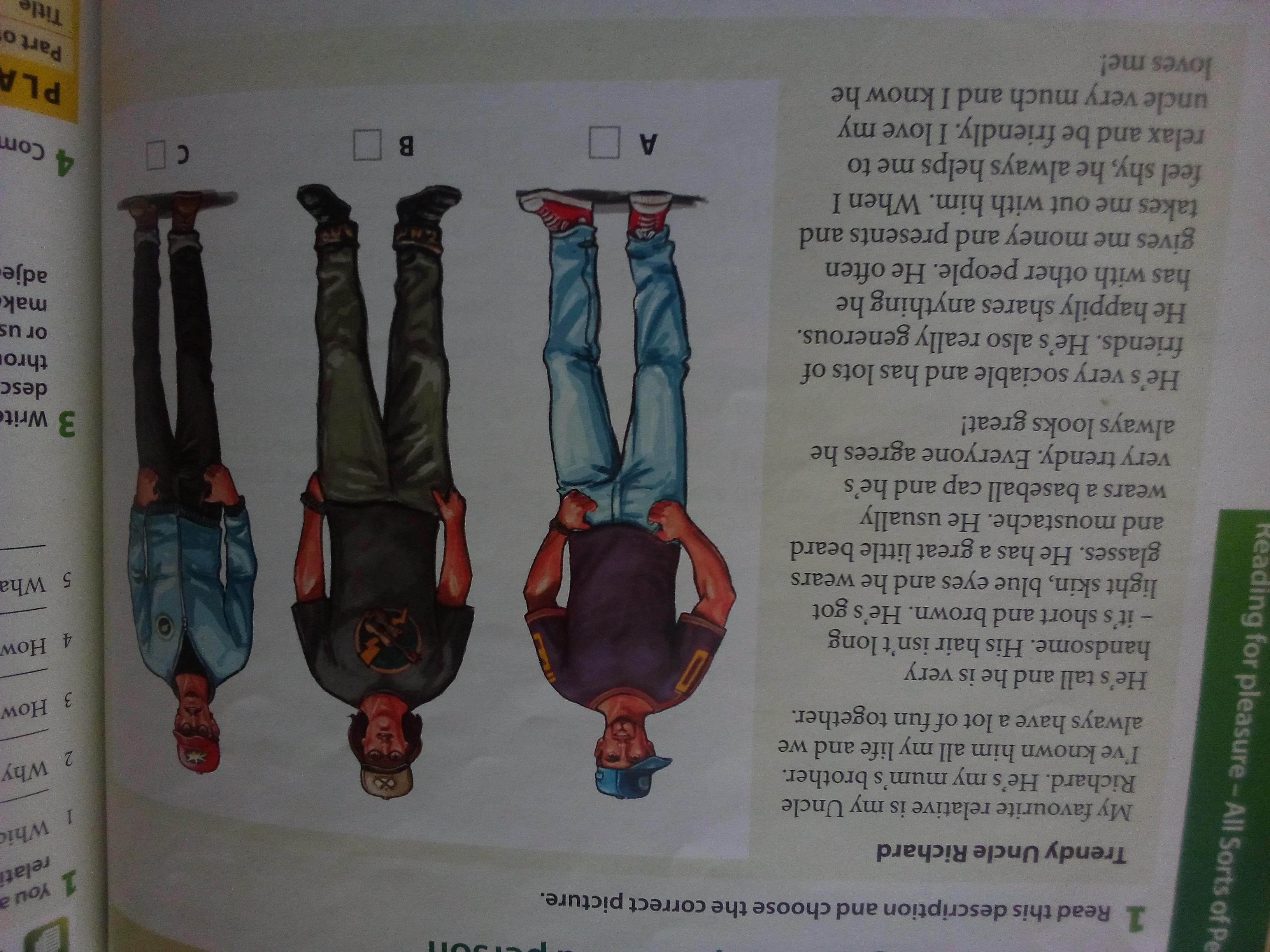всегда весело вместе. Он высокий и очень красивый. Его волосы не длинные - они короткие и коричневые. У него светлая кожа, голубые глаза и он носит очки. У него совсем маленькая бородка