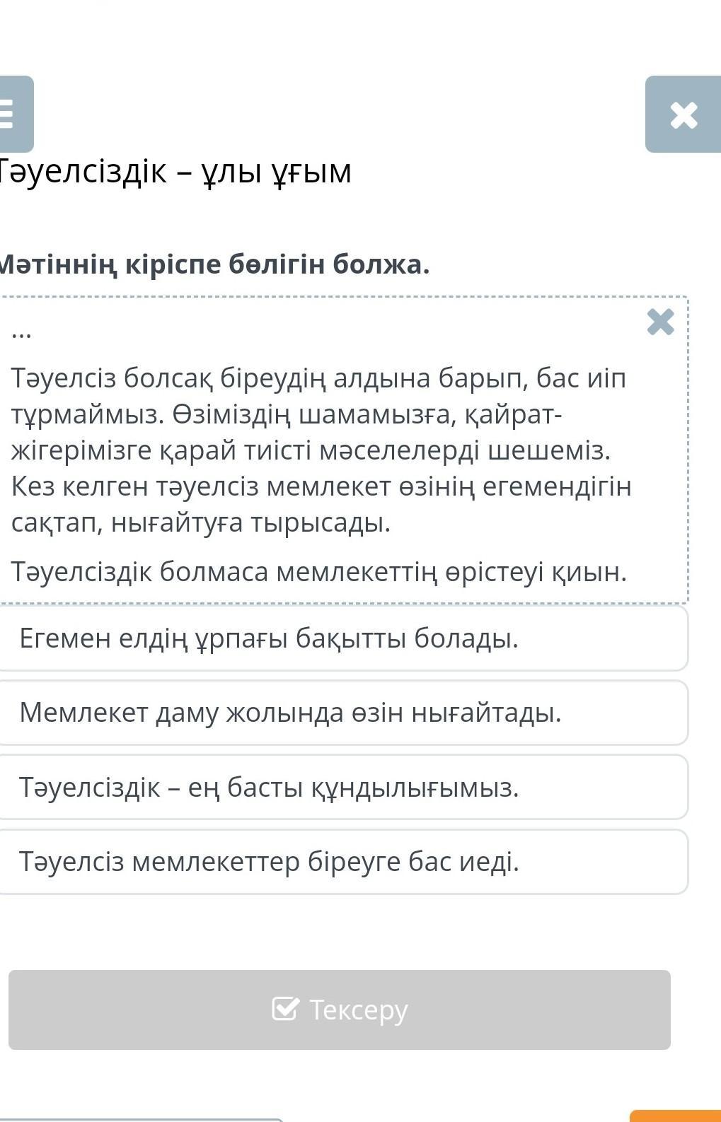 тәуелсіздік ең басты құндылығымыз